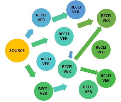d) Cluster Chain: In the cluster chain, a person tells the information to the selected people who may in turn pass the information to other selected people. Here, recipient is the selected person.